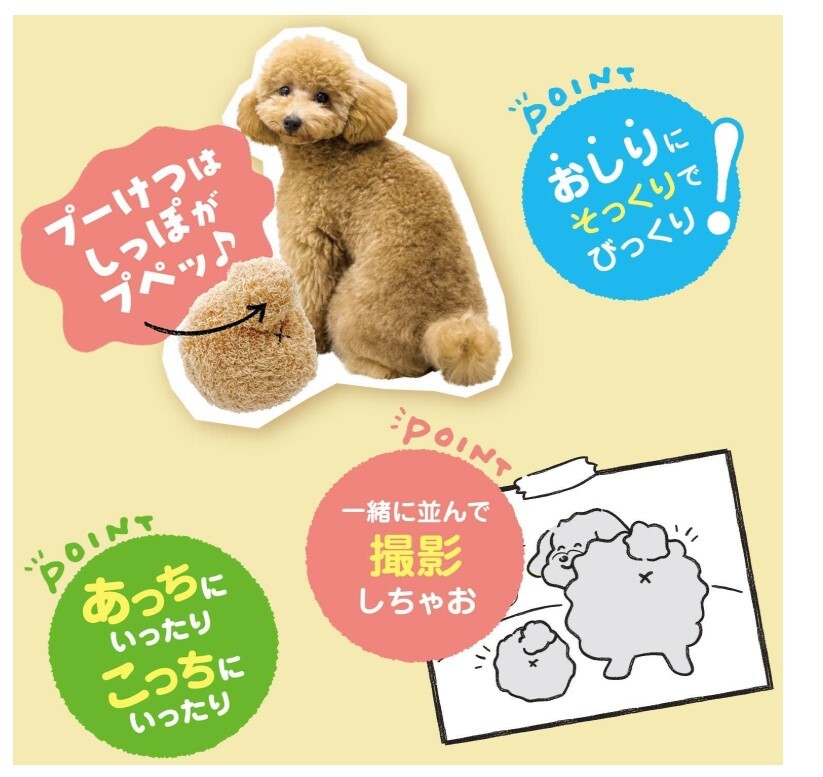 可愛的球形毛絨玩具,以貴賓犬屁股為主題