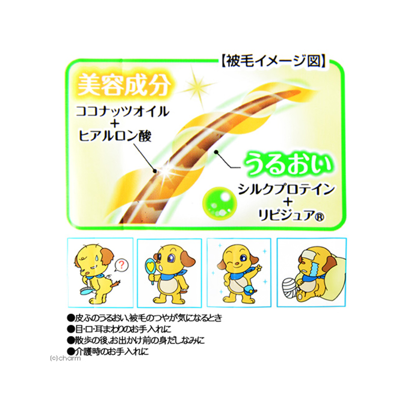 輕輕一擦,感覺清爽乾淨!椰子油和絲蛋白使您的皮膚和皮毛光澤、滋潤。透過擦拭來清潔室內灰塵和花粉。厚而柔軟的網布,易於使用。快乾型,乾燥快,不黏膩。