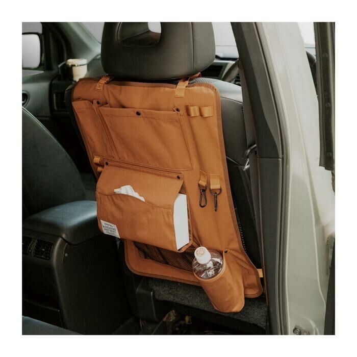 一個工具卷,可以安裝在汽車座椅的背面,用於存放開車或帶狗外出時所需的物品。捲起來緊湊,便於攜帶。